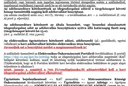 Hirdetmény az indegenforgalmi adóról szóló 1/1021 (I.22.) önkormányzati rendelet módosításáról