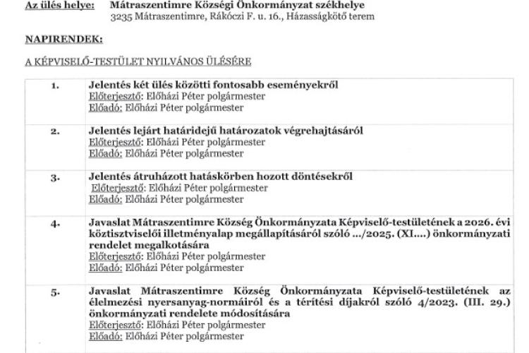 Kedves mátraszentimrei lakosok, látogatók!