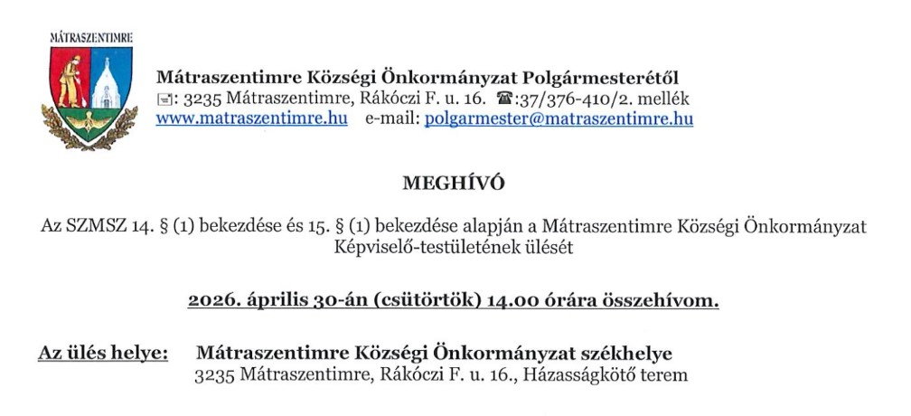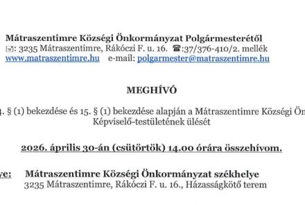 Meghívó a 2026. 04. 30-i Képviselő-testületi ülésre / 2026.04.26. admin küldte be 26 April 2026 időpontban Meghívó a 2026.04.30-i Képviselő-testületi ülésre
