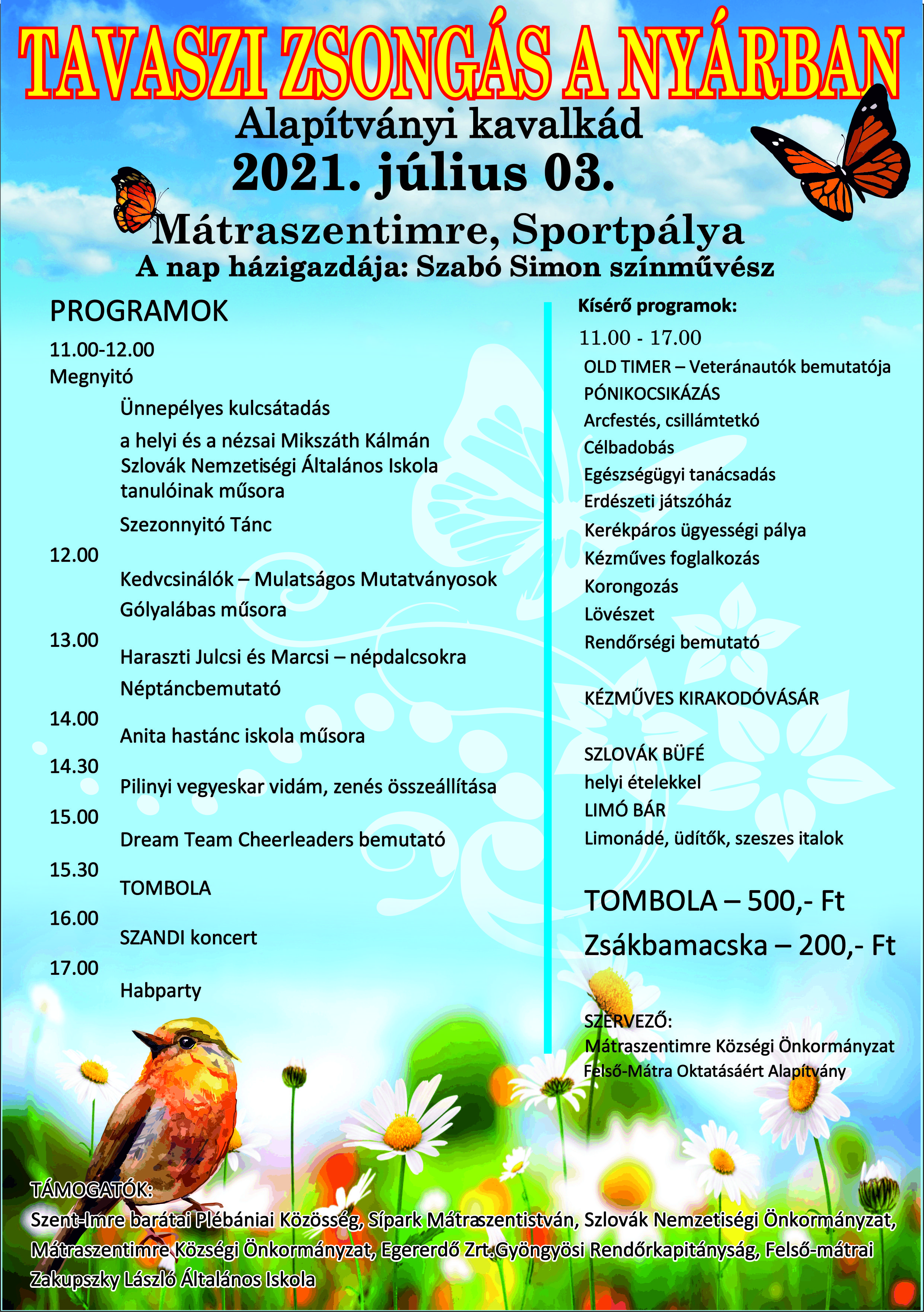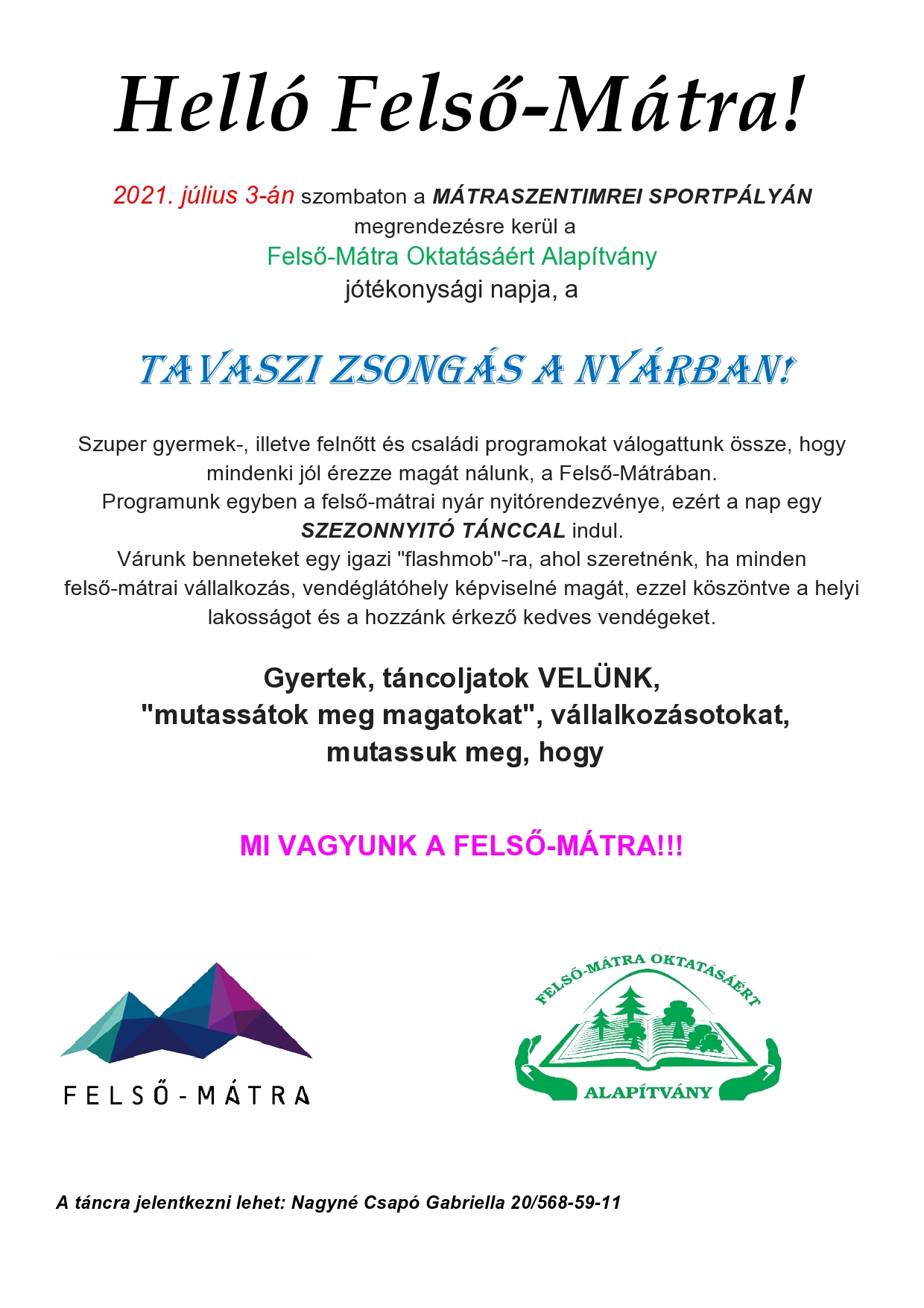 Szeretettel várunk a 'Tavaszi Zsongás a Nyárban" című nyári nyitórendezvényünkre 2021. július 3.-án, szombaton. További részleteket és a programot, a letölthető dokumentumokban találjátok.