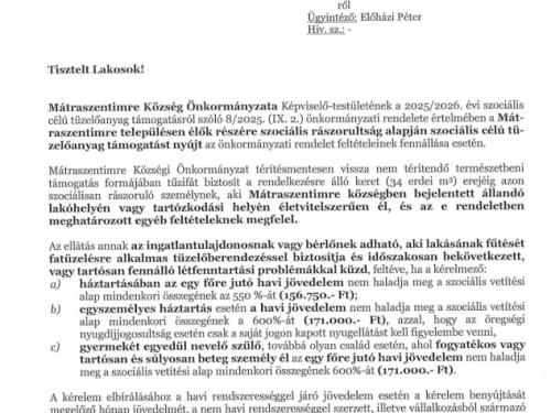 Felhívás - Szociális tüzelőanyag támogatás 2025-2026