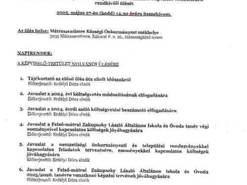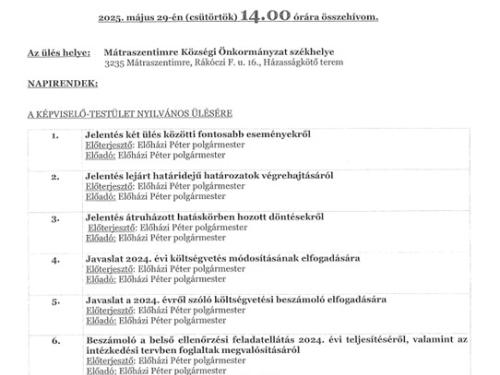 Meghívó a 2025.05.29-i Képviselő-testületi ülésre