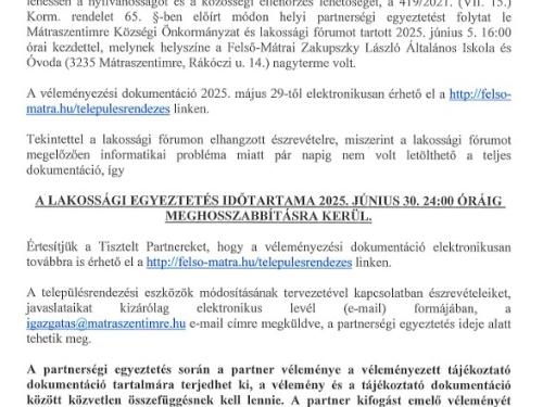 Hirdetmény - Mátraszentimre község készülő településterv lakossági véleményezésének meghosszabbításáról