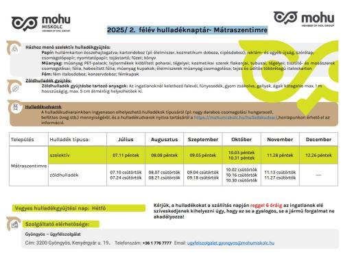 2025/ 2. félév hulladéknaptár- Mátraszentimre