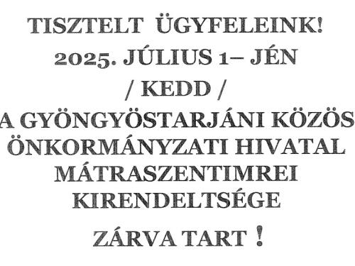 Önkormányzati Hivatal Zárva tartás - 2025. július 1.