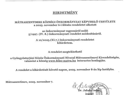 Hirdetmény az önkormányzat vagyonáról szóló rendelet módosításáról