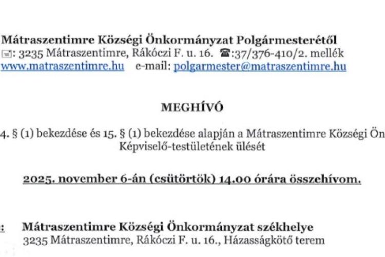Kedves mátraszentimrei lakosok, látogatók!