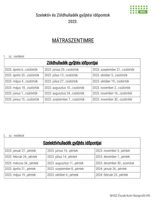 Szelektív- és zöldhulladék szállítás 2023-ban / 2023.01.08. szerkeszto küldte be 8 January 2023 időpontban matraszentimre_hulladeknaptar2023_0.jpg